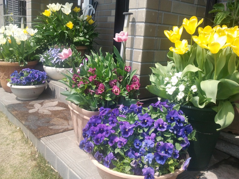 チューリップもパンジーももうすぐ終わりでしょうけど、あらん限りの生命力を感じます。