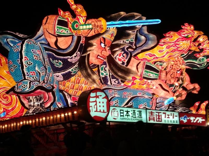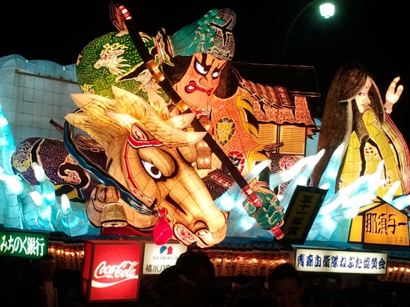 ねぶたは縦横サイズが決められていて、その空間の中で様々な世界観を醸し出していますが、何と言ったら良いのでしょう「武者絵」的な作品が殆どですね。武田信玄と上杉謙信の川中島の決戦や水滸伝の活躍など、勇ましい雄姿を描いたモノが皆の目を引いて慶ばれるからなのでしょうか。