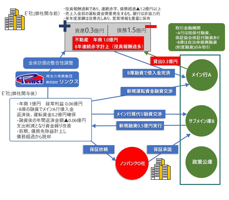 後でリンクスさんのホームページを見て「なるほど」と思いましたが、銀行で融資審査を担当していたとのアドバンテージが銀行担当者との交渉にも随所に見られました。 たぶん先方は、「厄介な交渉相手を連れて来たなぁ」と思っていたのではないでしょうか。交渉中も、銀行側が理論負けしてタジタジでした。 一方で優良担保・保全付融資は焦げ付くリスクが少なく、業績改善見込みがあるなら、その点を強く推して突破可能だとも交渉前からお話されていました。結果もその通りになり、大変満足です。 あのまま私一人で悶々としていたら、会社も畳む判断になっていたかも知れません。
